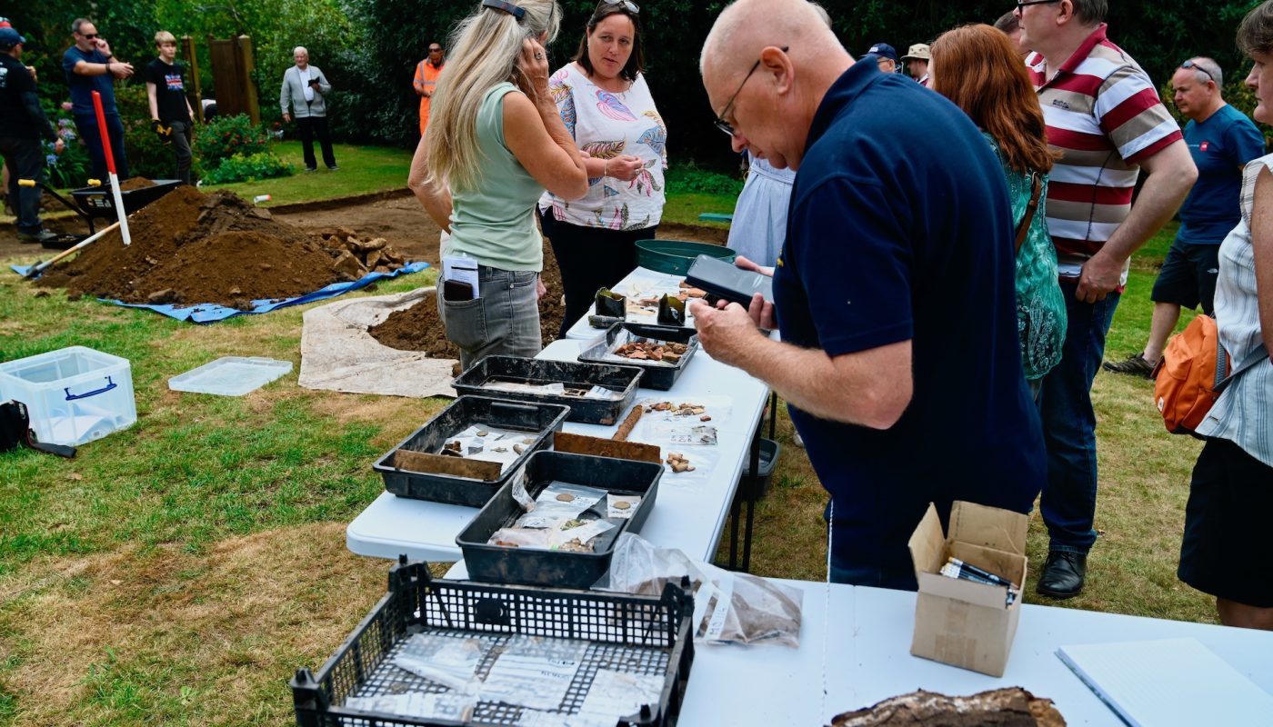 Saturday’s Public Open Day invited people onto the dig site with huge interest in the Village Hall exhibition of military memorabilia displays and military re-enactors.